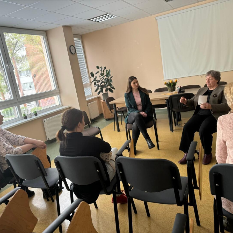 Susitikimo pabaigoje socialinė darbuotoja darbui su šeimomis Raminta Štreimikienė su paslaugų gavėjomis diskutavo apie joms kylančius socialinius sunkumus vaikui susirgus – kitų šeimos vaikų likusių namuose priežiūra, esant kartu su vaiku stacionare bei kaip šeimai, turinčiai mažas pajamas, pasiskirstyti biudžetą, kuomet vaiko ligos atveju šeima patiria nenumatytų išlaidų.