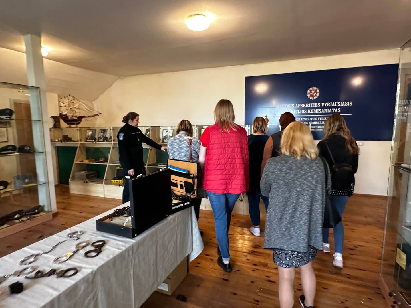VŠĮ Alytaus miesto socialinių paslaugų centro Paramos šeimai padalinio socialinės darbuotojos darbui su šeimomis Raminta Štreimikienė ir Dovilė Ivanauskienė paslaugų gavėjoms suorganizavo veiklas savipagalbos grupėse. Kartu apsilankyta Alytaus apskrities vyriausiajame policijos komisariate įsikūrusiame Alytaus teisėsaugos ir teisėtvarkos muziejuje. Alytaus apskrities vyriausiojo policijos komisariato pareigūnė O. Petraitienė papasakojo apie įsimintiniausias Alytaus policijos pareigūnų darbo patirtis, parodė ir plačiau papasakojo apie anksčiau naudotas pareigūnų darbo priemones, nusikalstamas veiklas vykdžiusių asmenų savadarbius ginklus, papasakojo apie išsiaiškintus originalius sukčiavimo būdus, parodė nuteistųjų sugalvotas ir pasigamintas vietas slėpti draudžiamus daiktus. Socialinės darbuotojos ir socialinių paslaugų gavėjos apžiūrėjo muziejaus eksponatus: išblaivinimo kėdę, raktus išsaugojusius pareigūno gyvybę, savadarbius ginklus ir kt.