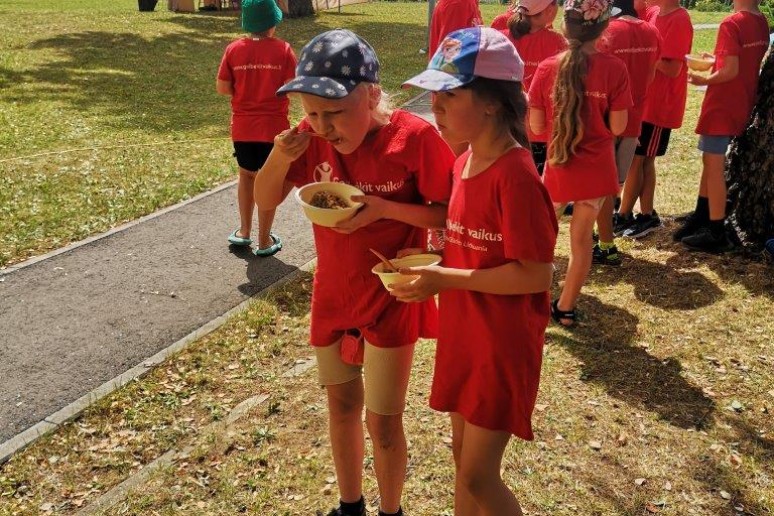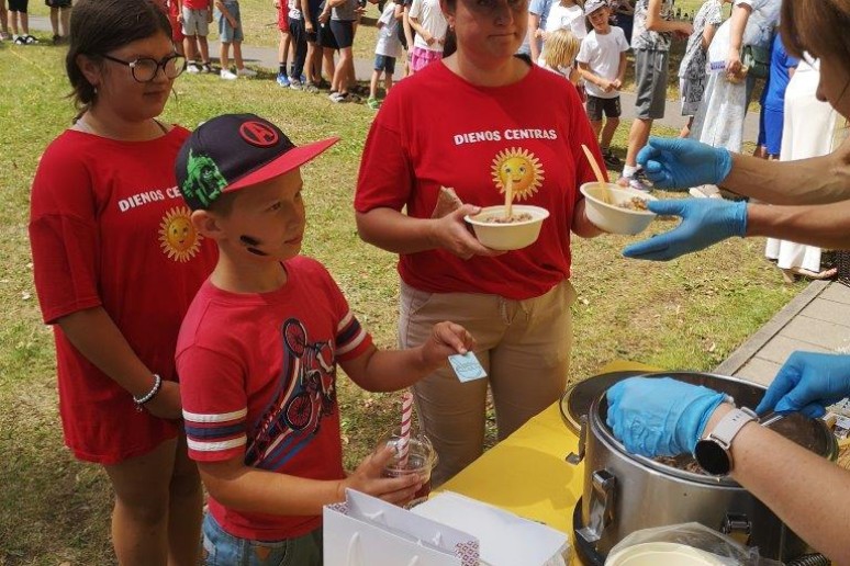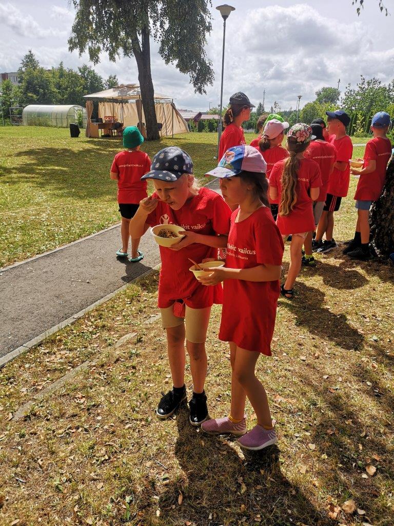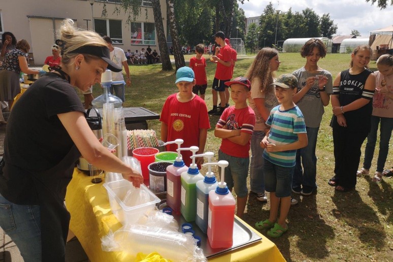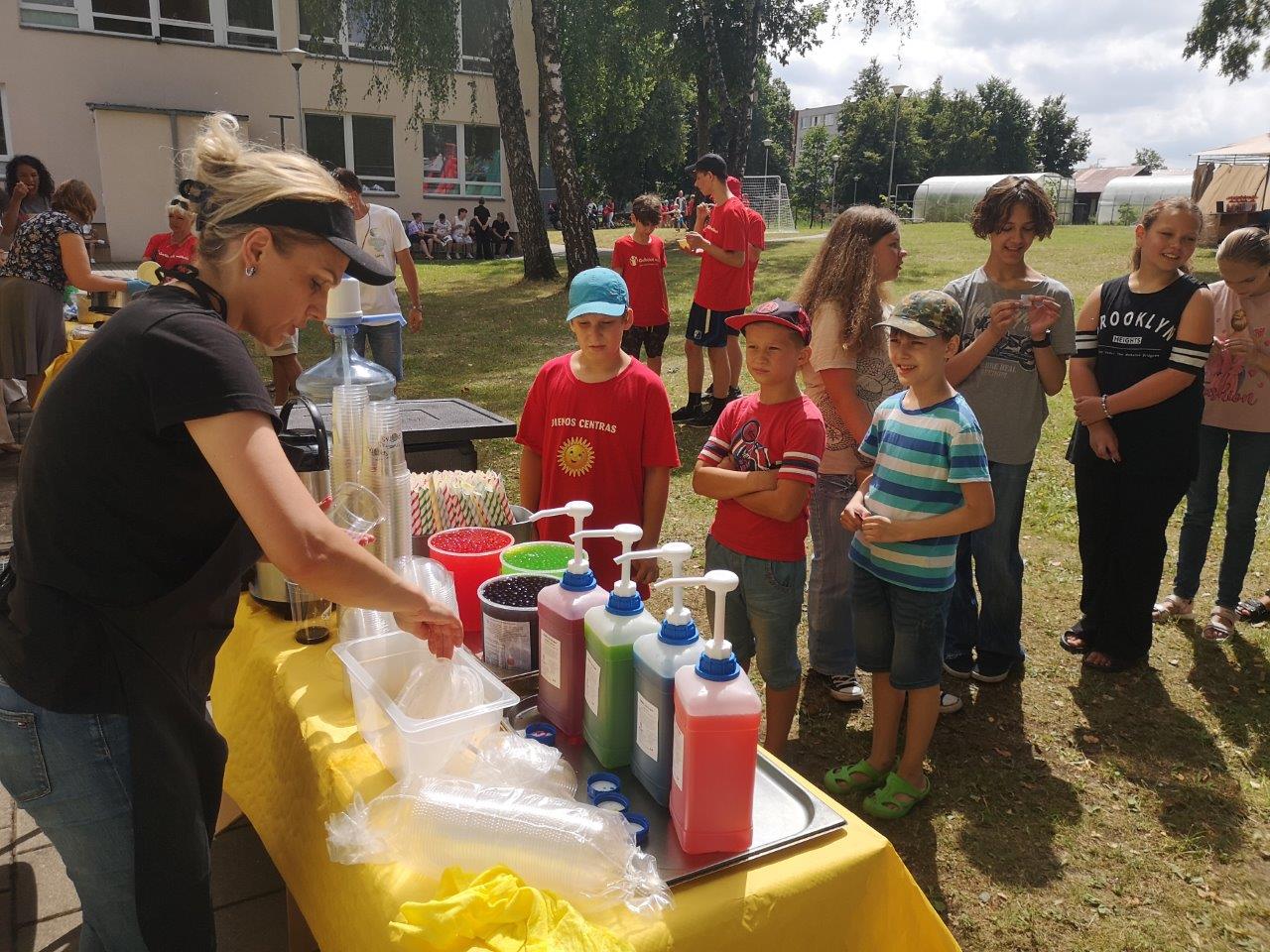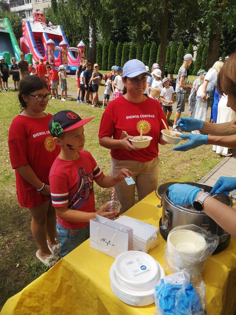 Aktyviai praleidusius laiką šėlstant, sportuojant, šokant ir dūkstant ant batutų kvietėme pasistiprinti labai maistinga grikių koše ir vaikų taip mėgstama burbuline arbata Spotas, o visus šventės dalyvius namo išlydėjome su gaivinančiais ledais, kuriuos mums dovanojo AB "Alytaus pieninė".