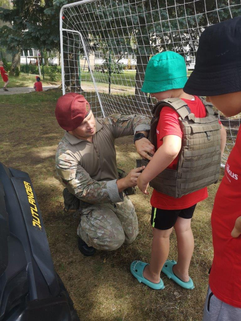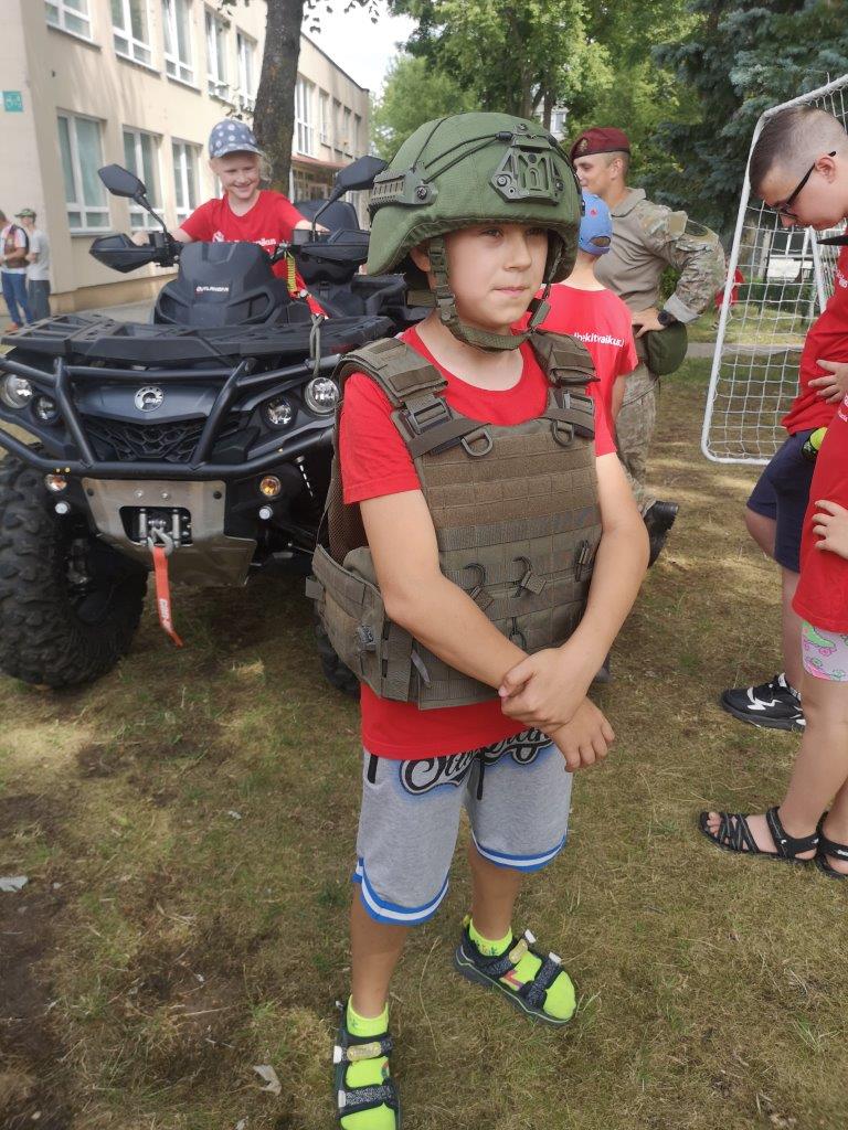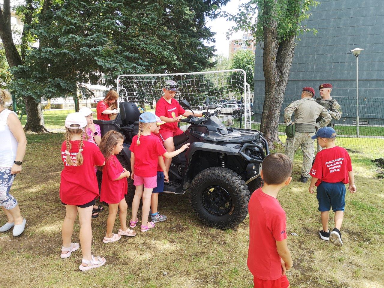 Karinę ekipuotę ir keturratį pristatė Krašto apsaugos savanorių pajėgų Dainavos apygardos 1-oji rinktinė kariai. Taip pat vaikai turėjo galimybę pasivažinėti unikaliu senoviniu motociklu, kurį suteikė ir vaikus smagiai pavėžino Alytaus miesto savivaldybės tarybos narys Petras Sabaitis.
